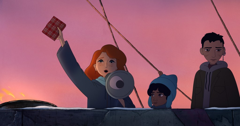Diría que el guion evolucionó junto a la vida real. Al principio, a finales de 2013, no pensaba principalmente en los refugiados, sino en las jóvenes de las zonas de guerra que vivían historias paralelas a la de Anne. Pero como la inmigración de refugiados de zonas de guerra a Europa llegó a un punto álgido en 2018 y 2019, reescribí el guion, aunque ya lo habíamos utilizado como base para la primera parte de la animación. La segunda parte trataba originalmente de las niñas en las zonas de guerra. Luego repasé esas secciones y me centré en los niños que huyen de las zonas de guerra para buscar seguridad en Europa. Esta es una de las ventajas de la animación: las producciones requieren tanto tiempo que se pueden hacer cambios en medio del proyecto.